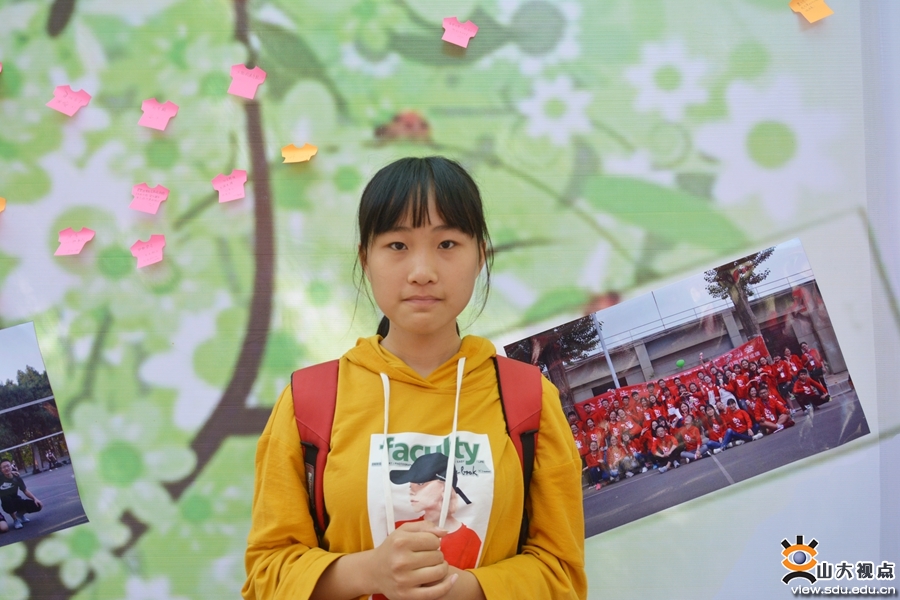 来自中国台湾的历史文化学院本科新生纪雅淳是家里的第二个山大人,她的姐姐也是山大学生,告诉她这里学习氛围很不错,环境很好,对她而言是一个很好的选择。她说:“通过网络搜索以及学长推荐,我了解到文管专业挺不错的,所以选择了这个专业。希望未来学习能轻松、踏实一点,大学里多参加活动,积累生活经验。”
