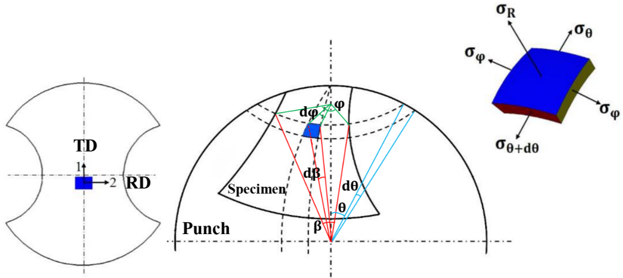 成形极限是表征金属板料塑性成形性能的重要指标,受到变形过程中法向应力与摩擦应力的显著影响。为此,本研究基于金属塑性变形基本理论与板料变形过程中的几何关系:(1)考虑应力梯度建立了法向应力表达式,并通过假定静水压力不影响塑性变形而将M-K模型中考虑法向应力的三维应力状态转换为等效的二维应力状态。(2)考虑变形过程中的摩擦条件建立了摩擦应力表达式,并提出在M-K模型中的主应力方向上叠加摩擦应力增量的方法,成功引入了摩擦应力。