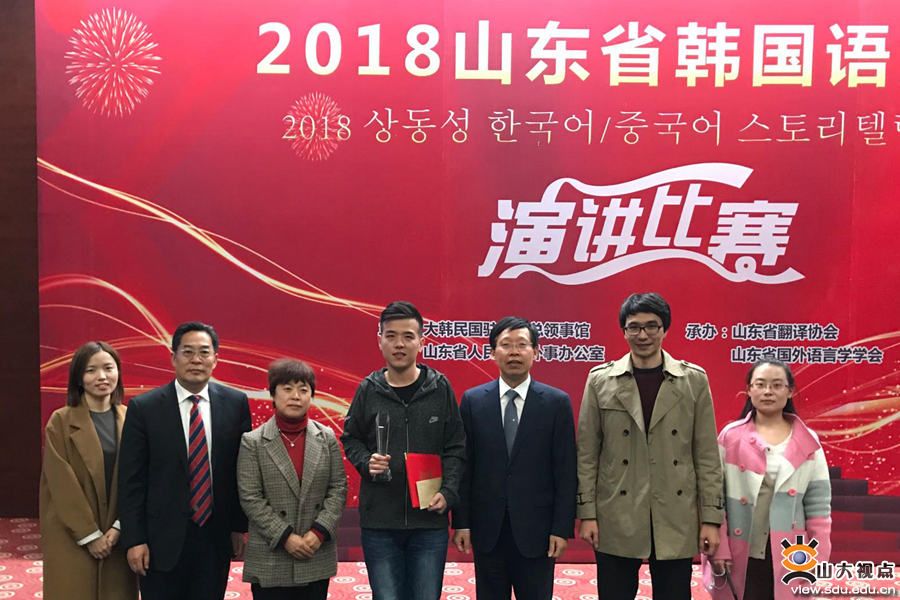 [本站讯]10月27日,2018年山东省韩语汉语演讲比赛在山东大学中心校区举行。外语学院朝鲜语系研究生何元航荣获一等奖,学生李彤荣获优秀奖。