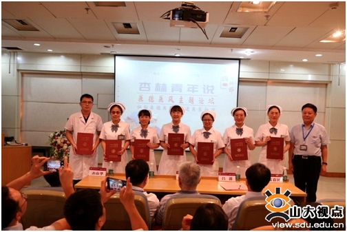 [本站讯]8月19日,在第二个中国医师节来临之际,口腔医学院(口腔医院)举办医师节庆祝活动暨第二届杏林青年说医德医风主题论坛,院党委书记吕波等领导班子成员及部分教职医务员工代表出席活动,副院长张春河宣读了表彰决定,院党委副书记吕光平向大家介绍了医师节期间医院组织的系列相关活动。活动中,学院(医院)对口腔医院“生命之尊”、“最美医生”、“最美护士”、“优秀医生”、“优秀护士”五个奖项共35人进行了表彰,以此激发全院医护人员的职业荣誉感和神圣使命感,营造尊医重医的良好氛围。
