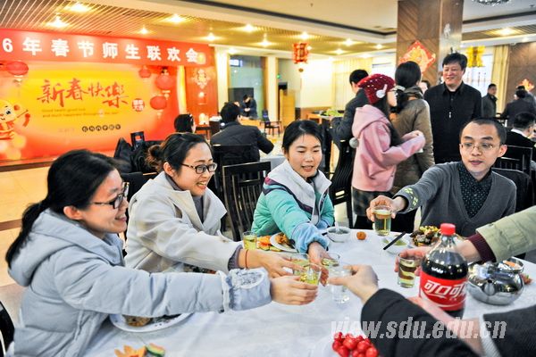 [本站讯]2月6日(农历腊月廿八)晚,山东大学在中心校区举行寒假留校学生春节年夜饭暨联欢会。常务副校长王琪珑、副校长胡金焱与百余名留校学生欢聚一堂,喜迎新春。