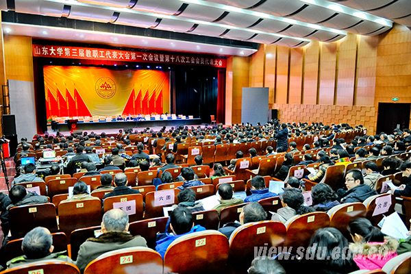 会上,“双代会”筹委会副主任、校党委常务副书记李建军作“第三届教代会第一次会议暨第十八次工代会筹备工作情况报告”。报告从加强对“双代会”的组织领导,出席本次“双代会”的代表和代表团组建,大会主要议题材料的起草,关于第三届教代会执委会、第十八届工会委员会和工会经费审查委员会委员的酝酿提名等四个方面介绍了“双代会”筹备工作。“双代会”筹委会副主任、代表资格审查委员会主任、校党委副书记、纪委书记陈向阳作“第三届教代会暨第十八次工代会代表资格审查报告”。本届“双代会”共产生代表443名,均为本校在职教职工和工会会员,代表构成涵盖了校区、学科、岗位及附属单位,代表个人均具备有关规定的代表所应具备的基本条件。代表资格审查委员会认为,443名代表均符合山东大学第三届教职工代表大会暨第十八次工会会员代表大会的代表资格,代表资格有效。