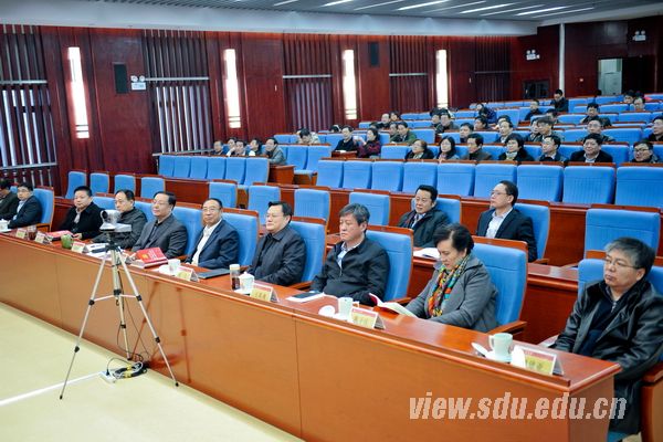 山东大学常务副校长王琪珑,副校长陈子江,总会计师曹升元,副校长刘建亚、胡金焱,学校党政机关、群团组织、直属附属单位、科研机构及附属医院主要负责人,各学院党委书记、党员院长参加了会议。同时在威海校区、青岛校区设立了视频分会场。