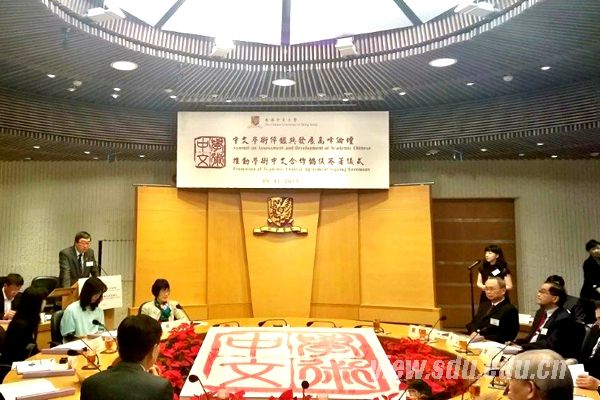[本站讯]11月18日,两岸四地32所高校代表齐聚香港中文大学,参加“中文学术评鉴与发展高峰论坛”,共同商讨协力提升中文学术期刊国际影响力之大计。山东大学副校长胡金焱出席论坛,并代表山东大学签署“两岸四地大学关于推动提升中文学术期刊地位合作协议”,加入合作联盟。