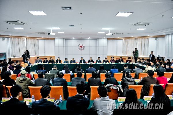 [本站讯]为深入学习贯彻党的十八届五中全会精神,帮助全省高校广大师生正确理解、准确把握会议的精神实质,进一步把思想和行动统一到中央的决策部署上来,11月12日上午,学习宣讲党的十八届五中全会精神座谈会在山东大学中心校区召开。党的十八届五中全会文件起草组成员、中央宣讲团成员,山东省委副书记、省长郭树清作宣讲报告。山东大学党委书记李守信出席宣讲报告,校长张荣出席有关活动。