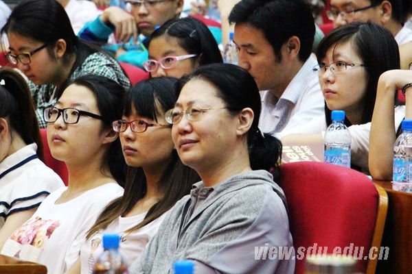 宣讲会上,百姓宣讲团成员,济南市育园学校教师孙屿萌、鱼台县鹤来香食品有限公司总经理李小刚、济南市殡仪馆入殓师辛沙沙、蓬莱市文化馆工作人员李慧莹、齐河县焕云团队励志讲师朱英超、济南市公交总公司K52路司机董丹等,分别作了题为《我骄傲 不只因为桃李芬芳》、《李小刚的“三农”实践》、《只为人生谢幕时的美丽》、《我有一件黑礼服》、《告诉世界我来过》、《十米车厢里的生死考验》的宣讲报告。孙屿萌讲述了自己从普通教师成长为一名特教园丁的心路历程,以及工作中的点点滴滴和自己的职业感悟。李小刚介绍了自己情系三农,放弃高薪工作回乡创业,带领回乡大学生致富,以及从事农村公益事业的亲身经历。辛沙沙讲述了自己把青春奉献给入殓师事业的果敢抉择、工作中遇到的困顿和自己对入殓师这一职业的坚守。李慧莹讲述了自己如何从一名喜欢高雅艺术的大学毕业生转变为热心基层文化公益事业、积极从事文化下乡活动的文化馆工作人员的工作经历。朱英超讲述了自己面对不幸遭遇,身残志坚,永不放弃,坚持传递人间美好的励志情怀。董丹讲述了在公交岗位上遭遇劫匪,临危不惧,智斗持刀歹徒,捍卫乘客生命财产安全的真实经历。通过聆听宣讲报告,广大师生意识到,社会主义核心价值观是我们当前社会的基本价值遵循;践行社会主义核心价值观,体现在一个个具体的行动中,体现在我们生活中的点点滴滴里;只要真心关注社会,关爱他人,爱岗敬业,无私奉献,弘扬正气,传递真情,每个公民都能成为践行社会主义核心价值观的重要力量。本次宣讲活动由省委宣传部、省委讲师团主办,山东大学党委宣传部承办。山东大学党委宣传部部长李平生主持宣讲会。宣讲团领队、省委讲师团主任张丽,山东大学相关部门负责人和师生代表200多人参加了宣讲会。