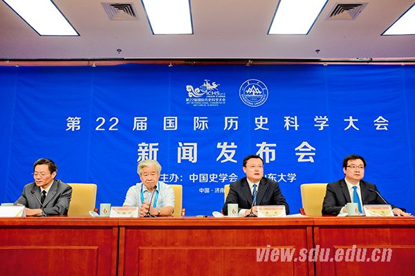 新闻发布会由中国史学会、山东大学主办。中国史学会秘书长王建朗主持会议,第22届国际历史科学大会山东大学组委会秘书长、山东大学历史学院院长方辉发布了本次大会的各类相关数据。来自人民日报、光明日报、中新社等多家新闻媒体的记者参加了发布会并进行了现场提问。