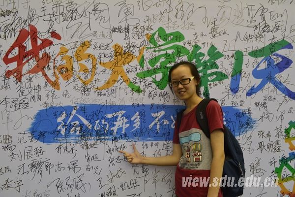 外国语学院2015级本科生孙恺伦:山大是我从小就一直向往的大学,而且早就耳闻山大学霸氛围浓厚,历史悠久。现在如愿来到山大,并且读我很感兴趣的西班牙语专业,很开心!希望自己可以过和高中不一样的生活,做一些没有做过的事情,弥补以前的遗憾,比如说谈个恋爱呀,当然现在恋爱就不算早恋了。