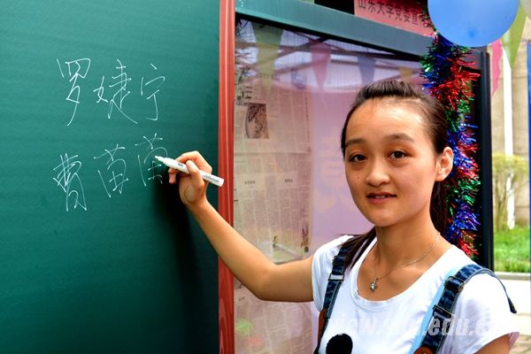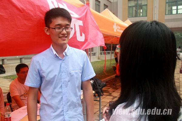 外国语学院2015级本科生宋昭:第一天报道,觉得山大非常的热闹!学姐学长也都很热情!希望在今后的大学生活可以够锻炼自我,提高社交能力。
