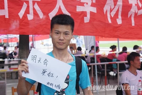 材料科学与工程学院2015级研究生王涛:在开学的第一天我非常激动,对山大这所历史悠久的大学心怀憧憬。希望在以后读研的三年日子里更上一个台阶。我感觉校园的环境让人心情很舒畅,但是听说山大宿舍不是很好,希望在以后有所改观。