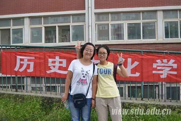 历史文化学院2015级本科生陈秀琳、武璐帅:读高中的时候知道山大文史哲很出名,但还是没有很具体的概念。来了以后发现校园满是红色,好像童话一样。觉得报道的流程比想象中方便,学长学姐们也都很热情,很贴心,生活也比高中自由很多。虽然现在对大学的生活依然没有很清晰的概念,但希望四年以后的自己起码可以自力更生,不忘初心。