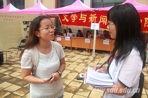 政治学与公共管理学院2015级研究生夏文静:山大人很热情,学术氛围好,希望研究生涯里能够有所成就。