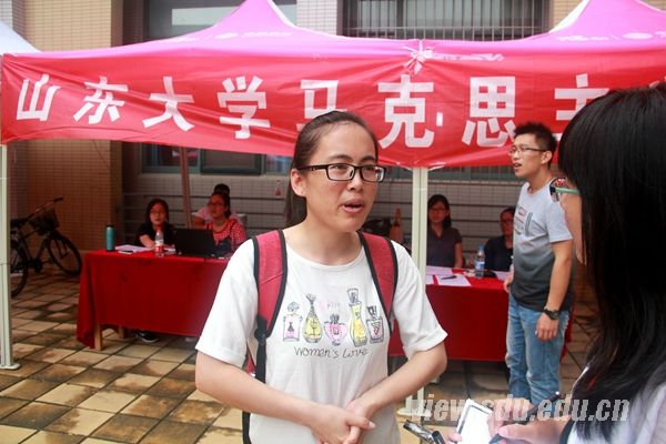 马克思主义学院2015级研究生张青:我在自习室、图书馆都看到了很多在读书的同学,感受到了这里浓厚的学习氛围。希望自己能够在山大得到提升,成为一名高校辅导员!