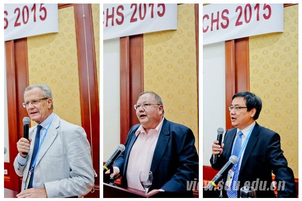 国际历史学会秘书长罗伯特·弗兰克教授(左),香港科技大学人文学院院长李中清教授(中),山东大学历史文化学院院长、第22届国际历史科学大会山东大学组委会秘书长方辉(右)分别发言