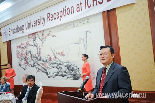 山东大学校长张荣在招待会上致辞