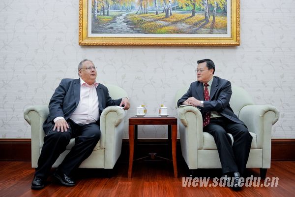 会前,张荣会见了李中清教授和芝加哥大学历史学家、汉学家彭慕然(Kenneth Pomerranz))教授。在与李中清教授会谈中时,张荣对香港科技大学人文学在山东大学“中国学”全英文硕士课程项目建设上所给予的大力帮助表示感谢,他希望未来借助香港科技大学的平台和网络,让山东大学“中国学”项目从一个高起点的国际平台上获得快速发展。李中清教授充分肯定了山东大学中国学项目中所做的努力,对山东大学师资和学生的水平给予了高度评价。他表示,与山东大学已有的良好合作使他深受鼓舞,希望在其正在规划建设的涉及中国人文历史等内容的网络教学和翻转课堂项目中与山东大学确定密切合作伙伴关系,共同开创一个基于实际的国际网络和虚拟的互联网络之上的全新课程体系和标准。张荣表示,山东大学愿意与李中清教授的团队一起迎接这一具有开创意义的挑战,为山东大学的课程改革注入活力和动力。在会见彭慕然教授时,张荣对彭慕然教授的学术成就给予了高度的评价,希望彭慕然教授作为山大的校友,继续关心和支持山东大学人文学科,特别是历史学科的发展,通过多种形式与山东大学进行合作交流,促进山东大学学术发展。彭慕然教授深情回忆了与山东大学的不解之缘,介绍了目前正在进行的晚清济南的历史研究,并欣然接受了来山东大学工作研究的邀请。