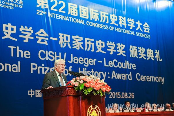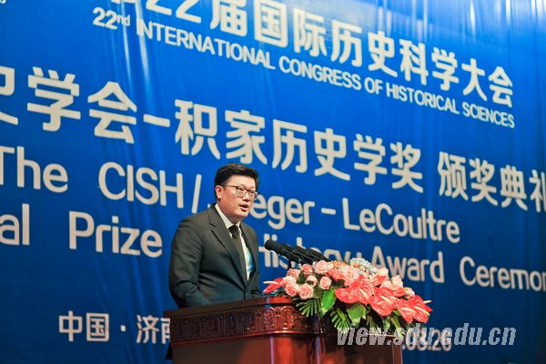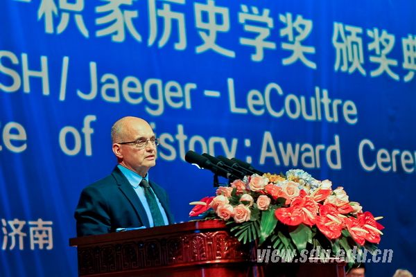 [本站讯]8月26日晚,首届国际历史学会-积家历史学奖颁奖典礼在山东会堂举行。法国社会科学高等研究中心荣休研究员、法国社会科学高等研究院荣休教授、美国普林斯顿大学特聘教授塞尔日•格鲁津斯基成为第一位国际历史学会-积家历史学奖得主。国际历史学会主席玛丽亚塔•希耶塔拉、瑞士积家手表中国区行政总裁张锴在典礼上致辞并为塞尔日•格鲁津斯基教授颁奖。塞尔日•格鲁津斯基在会上作主旨演讲。国际历史学会财务总监劳伦•蒂索宣读颁奖辞,秘书长罗伯特•弗兰克致闭幕辞。