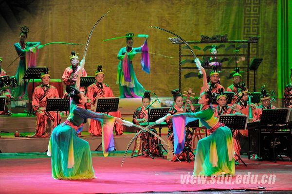 山东歌舞剧院民族乐团表演了《孔府乐舞》,舞蹈分《序》、《钟乐篇》、《鼓乐篇》、《钟乐篇》四部分,精彩的表演带给大家美轮美奂的视觉感受。本次活动由国际历史学会、瑞士积家公司联合主办。国际历史学会副主席茜尔达•萨波托、皮姆•邓波尔,中国史学会会长张海鹏,国际历史学会执行局委员安德烈•吉亚迪纳、林劼铉、卡伦•奥芬,副秘书长帕斯卡•柯西,500余名专家学者以及部分山大师生参加了颁奖典礼。