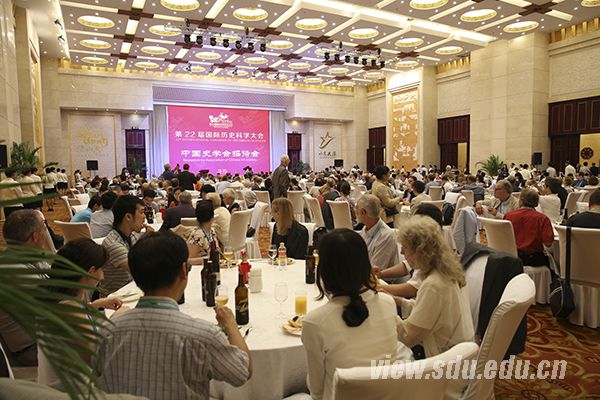 [本站讯]8月26日晚,中国史学会招待晚宴在山东大厦金色大厅举行。国际历史学会主席玛利亚塔·希耶塔拉,中国史学会会长张海鹏,山东大学校长张荣等出席晚宴。