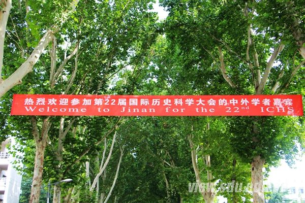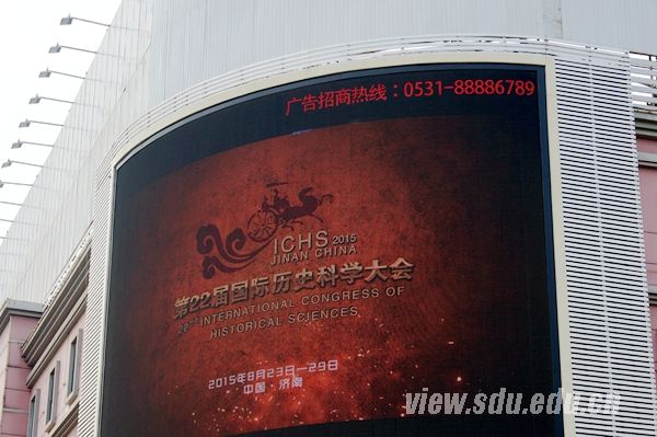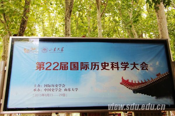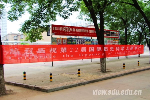 目前,山东大学周围以及山东大厦周边随处可见大会召开的宣传性标语、标志。山东大学分别在明德楼、学人大厦、学府酒店以及各校区餐厅、图书馆、阅报栏、校区入口等处采用横幅、电子屏、道旗、电视等形式,展示国际历史科学大会即将召开的信息。学校周边的花园路、经十路、山大北路及山大南路等主干道也制作了景观草坪、路牌等进行大会宣传。