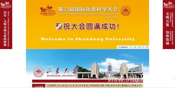 日前,登录山东大学官网首页会发现,首页处推出了热烈欢迎参会学者的FLASH标语。从8月16日起,山大视点网站推出了迎接史学大会的系列报道,每天发布一篇展示大会进展的综合报道。山大视点微信也以倒计时的形式梳理了大会发展历程、会议内容、筹备情况、会务信息等内容,同步更新山大要闻对史学大会进展情况的报道。第22届国际历史科学大会新闻网于8月1日正式上线,目前各栏目已逐步充实,实时刊发大会最新动态。