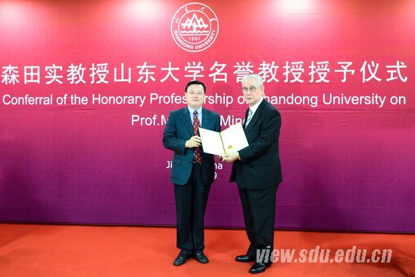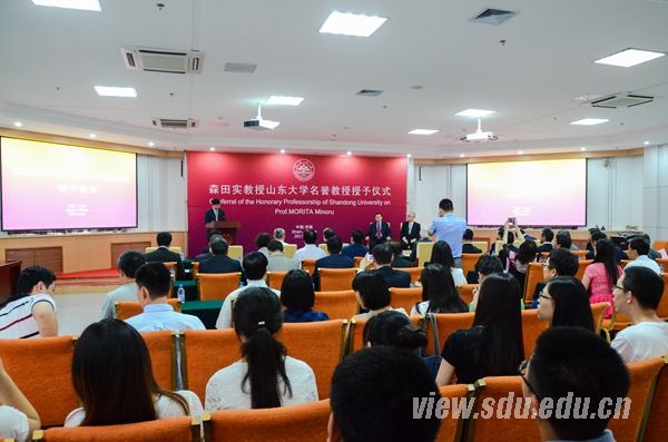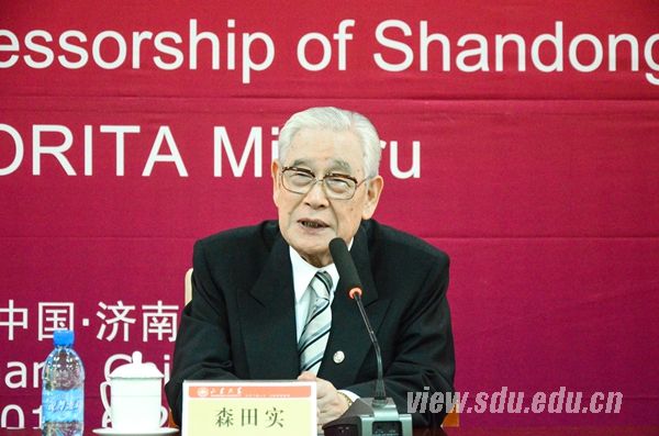 聘任仪式上,森田实教授说,自己自幼研习论语,深受儒家思想的启发与教导,对孔孟先贤充满了崇敬之情。他表示,此次受聘名誉教授,成为山东大学的一员,今后将更加努力地推动山东大学与日本高校间的交流与合作,为促进中日两国和平友好作出更大贡献。
