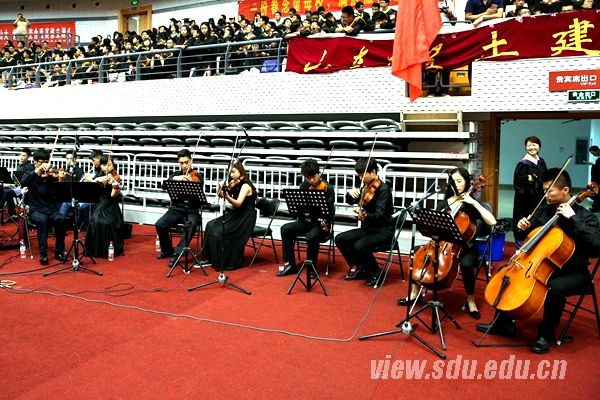 序典阶段,与会人员还分别欣赏了宣传部、学工部制作的视频《醉美山大之春》、《光阴的故事》,点滴瞬间勾起无数曾经的回忆,同学们纷纷抱以热烈的掌声。艺术学院师生倾心演唱了《饮酒歌》、《欢聚一堂》,以此为毕业生送上祝福,并在学位授予仪式全程现场奏乐,为仪式营造了活跃的气氛。