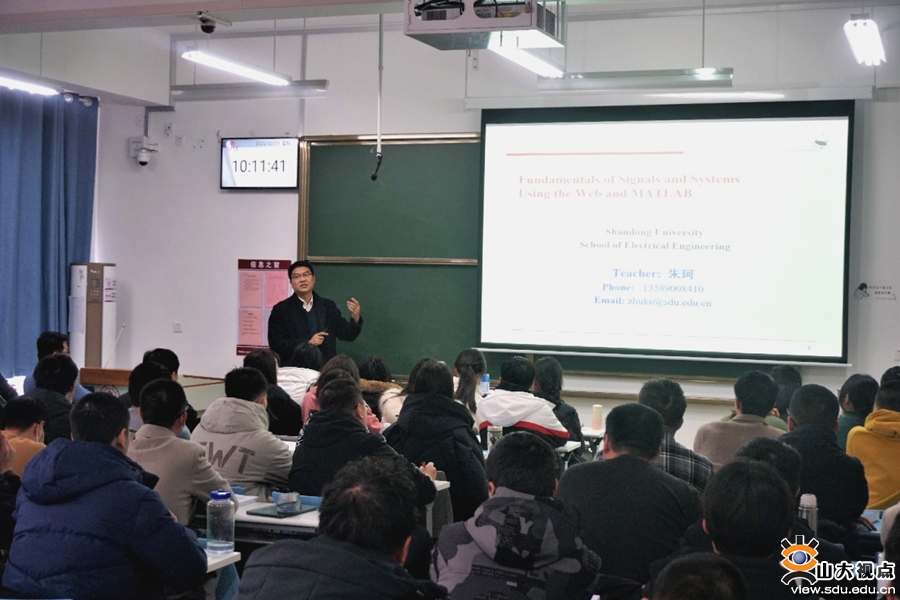 开展开学第一周“公开教学”活动,电气工程学院电力电子研究所朱珂副教授面向2020级本科生讲授了双语专业必修课《信号与系统》,多名教师到场与同学们一同聆听这节别开生面的开学第一课。