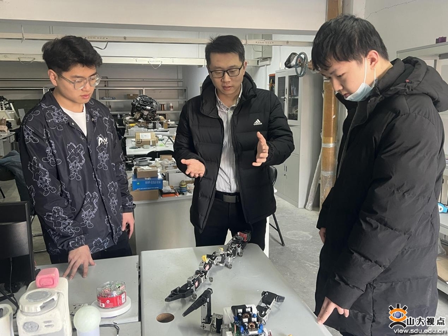 机械工程学院教师杜付鑫在兴隆山校区学院双创基地指导学生科技创新项目。