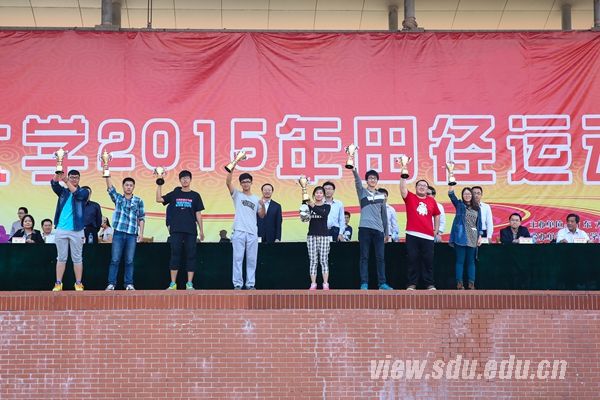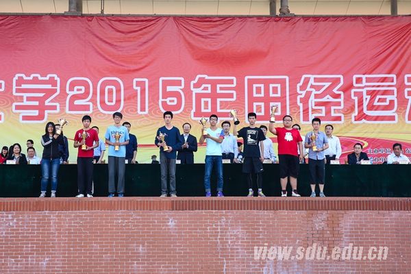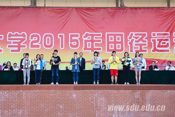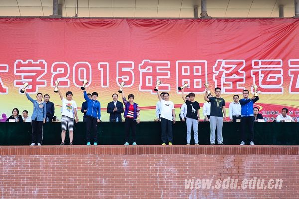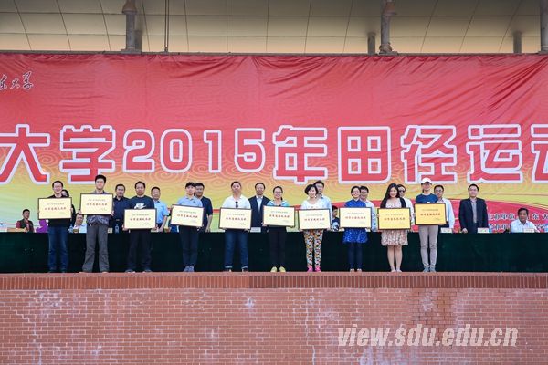 [本站讯]4月25日下午,山东大学2015年田径运动会在兴隆山校区体育场闭幕。材料科学与工程学院获得学生组团体总分第一,外国语学院、管理学院分列第二、第三。控制科学与工程学院获得男子学生组团体总分第一,外国语学院获得女子学生组团体总分第一。后勤工会获得教工组团体总分第一,齐鲁医院工会、机关工会分列第二、第三。护理学院等10个学院获得体育道德风尚奖。校领导方宏建出席闭幕式并致辞。