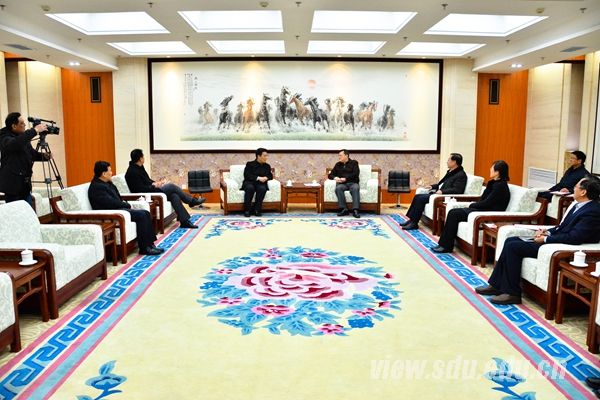 [本站讯]1月30日上午,山东大学校长张荣在中心校区会见济南市历城区委书记、区人大常委会主任李胜利一行,双方进行了座谈交流。校党委常务副书记李建军参加座谈。