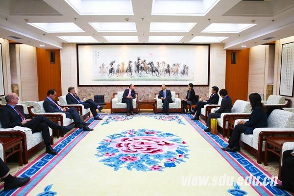 [本站讯]12月4日,荷兰莱顿大学校长Carel Stolker率团访问山东大学。山东大学党委书记李守信会见来访客人;副校长娄红祥参加会见,并与代表团举行工作座谈。