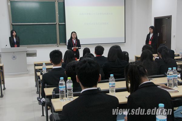 [本站讯]11月23日,山东大学第三十三次学生代表大会和第十五次研究生代表大会在中心校区召开。山东大学校长张荣、校领导方宏建出席开幕式。大会学习了中国共产党第十八届四中全会精神和中华全国学生联合会《关于加强和改进高校学生会研究生会建设的指导意见》,选举产生了新一届学生委员会和研究生委员会。