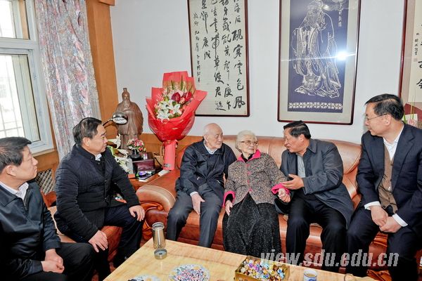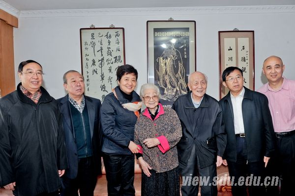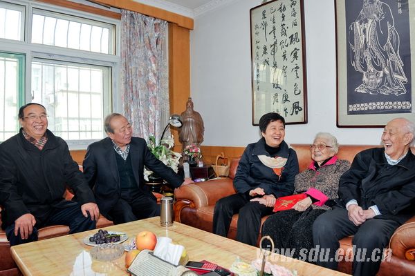 上午9时,高晓兵、焉荣竹、李守信等来到孔令仁先生家中。高晓兵代表省委省政府对孔令仁先生九十岁寿辰表示祝贺和慰问,她详细询问了孔先生的生活和工作情况,介绍了山东经济社会发展状况,嘱托孔先生保重身体,祝她健康长寿。李守信代表学校对孔令仁先生为山东大学的改革发展所作的贡献表示感谢,祝福她生日快乐,幸福平安。