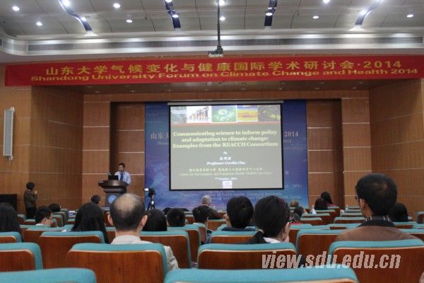 研讨会上,联合国政府间气候变化专门委员会专家Alistair Woodward教授介绍了国际气候变化专门委员会的最新报告。澳大利亚格里菲斯大学Cordia Chu教授、美国华盛顿大学Cristie L.Ebi 教授、美国俄亥俄州立大学Qinghua Sun教授、澳大利亚阿德莱德大学Peng Bi教授和瑞典于默奥大学Jing Liu-Helmersson博士分别作报告。山东大学气候变化与健康研究中心主任刘起勇教授介绍了国家重大科学研究计划——“气候变化对人类健康的影响与适应机制研究”,该研究以刘起勇教授为首席科学家,旨在全面深入研究气候变化对健康的影响并为应对和适应气候变化提供科学的决策依据。清华大学徐冰教授、中国科学院地理科学与资源研究所王劲峰研究员、山东大学气候变化与健康中心副主任马伟副教授等分别针对各自课题的研究进展作了报告。