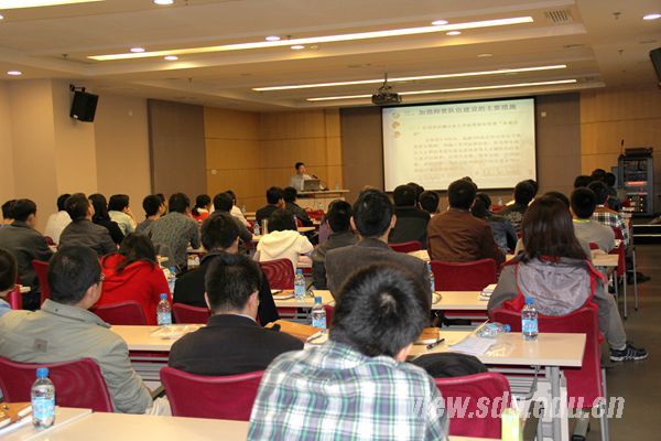 [本站讯]近日,山东大学对2014年度新聘青年教师进行了入职培训,副校长娄红祥、陈炎出席活动并作专题报告。70余位新聘青年教师参加培训。