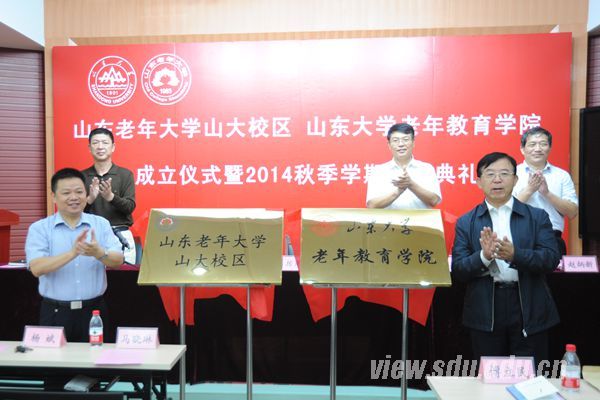 会见前,举行了山东老年大学山大校区、山东大学老年教育学院成立仪式暨2014秋季学期开学典礼。厉彦林、杜英杰、任德强、曹升元出席会议。厉彦林、曹升元共同为山东老年大学山大校区、山东大学老年教育学院揭牌;杜英杰在致辞中简要介绍了山东老年大学的历史,表达了对学校的感谢,以及对2014秋季学期新同学的欢迎;曹升元在致辞中简要介绍了山东大学的历史,对继续教育学院、有关学院及青年志愿者提出了希望与要求;山东老年大学山大校区学员代表、山东大学“青春相伴”老年大学青年志愿者服务团队队长分别发言。任德强主持会议。
