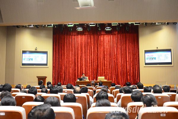 校长助理贾磊、全校副处级以上领导干部400余人听取报告,山东大学威海校区、青岛校区设视频分会场。