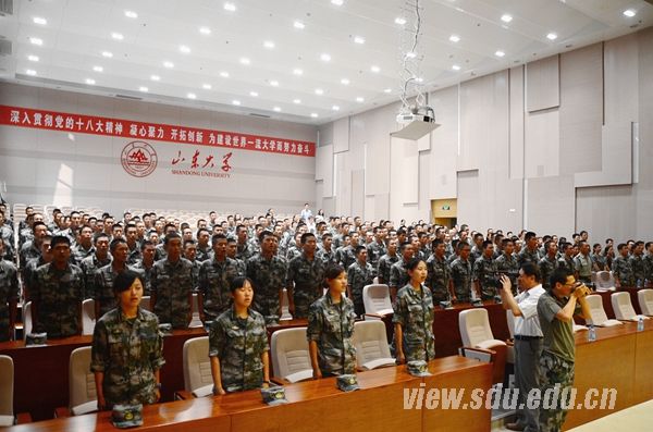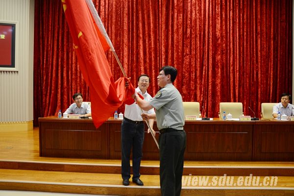 [本站讯]9月7日下午,山东大学2014级学生军训团成立暨开训动员大会在中心校区举行。校领导方宏建出席会议作动员讲话,并向军训团授团旗。
