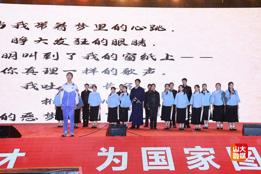 晚会在全场合唱《我的山大我的家》中落幕。2025级全体本硕博新生、家长代表、校友代表、校外嘉宾、相关学院及职能部门负责人以及在教书育人、科学研究、管理服务等工作中荣获表彰的教师代表观看晚会。