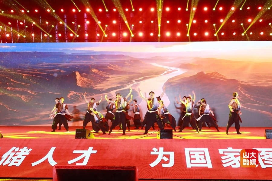 晚会共分为三个篇章。第一篇章“山海启航·风华正茂时”厚植齐鲁文化底蕴和时代精神。艺术学院(威海)舞蹈系学生带来舞蹈《大河之子》,以磅礴之势演绎山河壮阔与文明传承。附属中学与部分学院学生、职能部门教师共同演绎了纪念人民诗人臧克家先生诞辰120周年原创话剧《不灭诗火》,致敬先贤格物求真的执着和心怀天下的赤诚。附属中学中小学生与舜歌合唱团共唱《好风起》,展现了一代代山大人历经风雨、矢志报国的精神风貌。