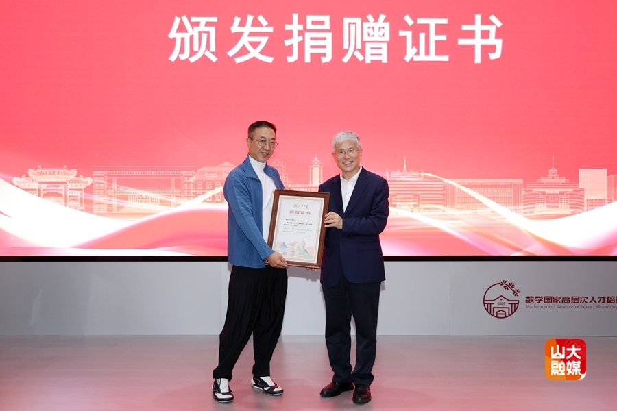 李术才向情系母校发展的焦震校友表示衷心感谢。他表示,山东大学数学学科是国内外具有重要影响力的科学研究中心和人才培养中心,几代学人薪火相承、踔厉奋进,为国家培养了大批专业基础扎实、创新能力卓越的优秀人才。学校将以焦震校友捐赠设立的“山东大学数学高层次人才培养发展基金”为契机,进一步紧密对接国家重大战略需求,打造具有全球竞争力的人才培养体系,以深化学科交叉和产教融合推进前沿领域创新突破,推动数学学科向更高质量发展,为加快建设中国特色世界一流大学,全面服务教育强国建设作出更大贡献。