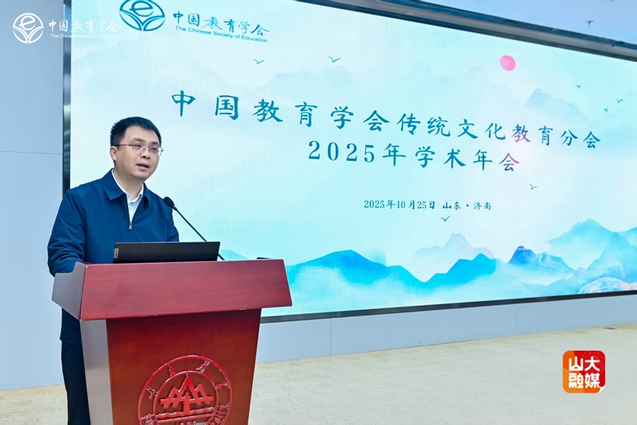 [本站讯]10月25日,中国教育学会传统文化教育分会在山东济南举办“2025年学术年会暨理事会换届大会”。本次年会由山东大学承办,山东山大基础教育集团协办,主题为“人工智能时代的传统文化教育”。中国教育学会常务副会长翟博、校党委副书记李向阳、山东省教育厅总督学王志刚出席大会并致辞。