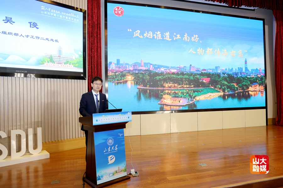 济南市委组织部人才工作二处处长吴俊,青岛市委组织部人才工作处副处长成文超,威海市委组织部副部长田素青分别介绍了三地的人才支持政策,聚焦“城市魅力”“产业实力”和“人才服务保障力”,解读了城市特色优势、重点发展领域及保障配套措施。山东大学人事部部长、人才工作办公室主任刘健从人才队伍概况、体制机制改革、人才体系构建、青年成长通道及评价激励等多个维度,系统解读了学校的人才政策与建设成效。晶体材料全国重点实验室教授赵永光作为引进青年人才代表分享了自己回归母校求职的经历,诚邀青年才俊加盟山东大学共赴新程。