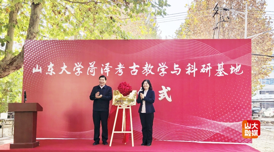 仪式上,刘连栋和山东大学本科生院、考古学院院长王芬为基地揭牌。