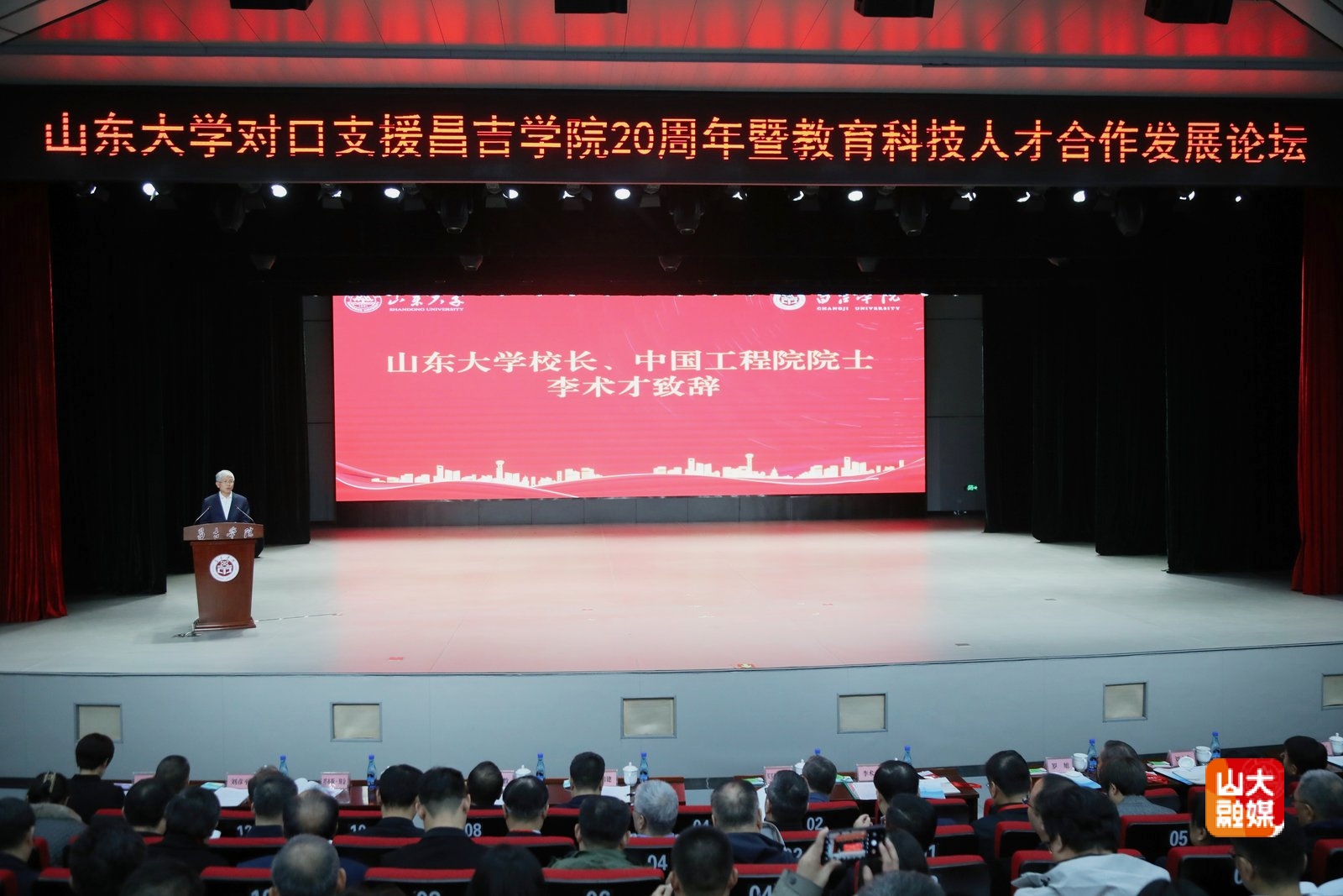 李术才表示,山东大学始终将对口支援工作作为重大政治任务,20年来,聚焦昌吉学院特色学科建设与师资队伍培养,构建了以人才为核心、以学科为重点的有效支援体系,为推动区域教育协调发展,铸牢中华民族共同体意识作出重要贡献。新征程上,希望两校继续携手奋进,以山东大学新疆研究院为核心纽带,聚焦学科共建、加强人才共育、深化科研协同,共同为推进中国式现代化新疆实践、实现强国建设和民族复兴作出新贡献。