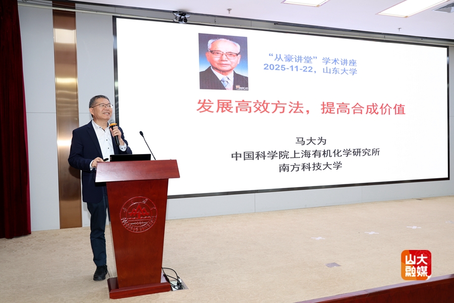 马大为院士作为“从豪讲堂”主讲人作题为“发展高效方法 提高合成价值”的学术报告,展示了有机合成化学领域的前沿成果。吴臻向马大为院士颁发“从豪讲堂”主讲人纪念奖杯。