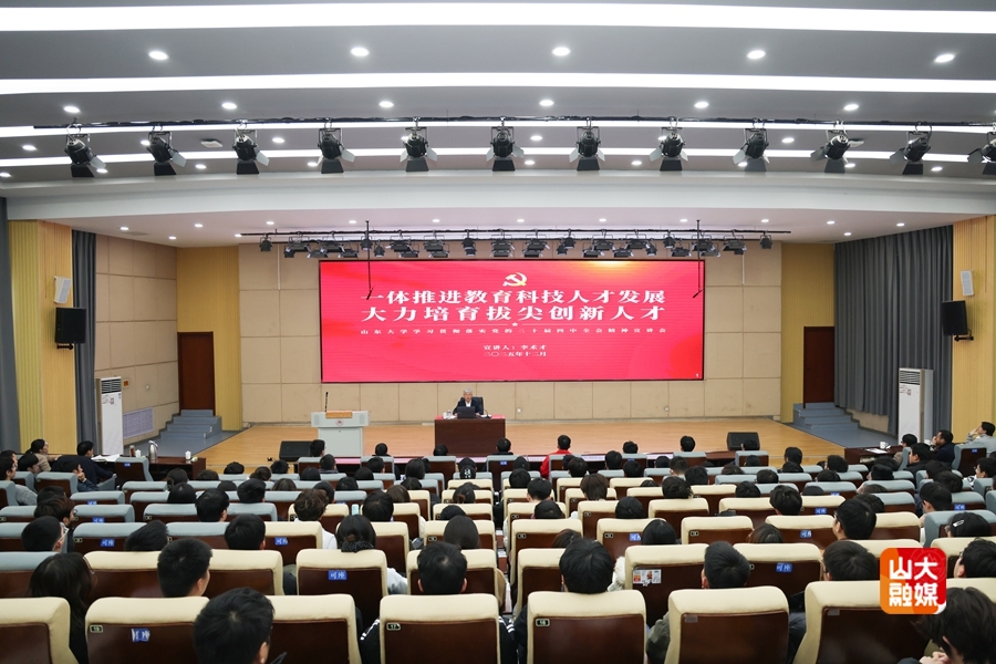 李术才以“一体推进教育科技人才发展,大力培育拔尖创新人才”为题,紧紧围绕习近平总书记在全会上的重要讲话和全会审议通过的《中共中央关于制定国民经济和社会发展第十五个五年规划的建议》,系统阐明了全会的重大意义,全面回顾了“十四五”时期我国发展取得的重大成就,深入解读了“十五五”时期经济社会发展的历史方位、指导方针、主要目标、战略任务、重大举措和根本保证,并结合学校实际就贯彻落实全会精神提出要求。他表示,全校上下要提高政治站位,全面学习领会习近平总书记重要讲话和党的二十届四中全会精神,深刻认识教育的历史方位和时代使命,切实以教育强国建设扎实成效服务支撑中华民族伟大复兴战略全局。要聚焦加快高水平科技自立自强,以深入推进学校综合改革为切入点,突出抓好立德树人、科技创新、人才集聚等关键环节,系统打造一体推进教育科技人才发展的山大范式。李术才勉励山大青年学子,厚植家国情怀,坚定理想信念,锤炼创新本领,磨砺坚毅品质,树立成长型思维,积极拥抱人工智能,多读书、多运动、多交流,努力成为堪当强国建设、民族复兴大任的栋梁之材,不断谱写“强国建设、山大有为、青年有为”的华彩篇章。
