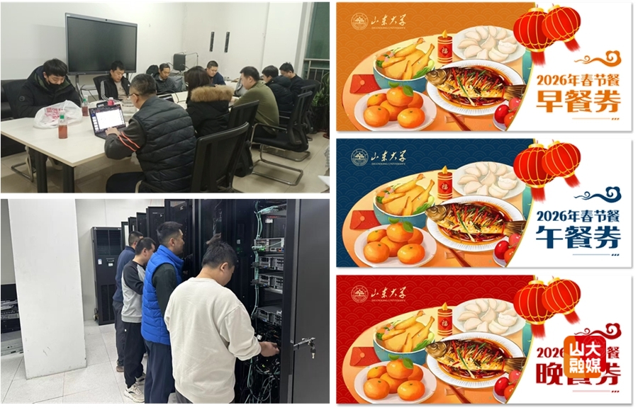 校园卡服务团队利用假期完成校园卡系统核心防火墙升级更换,提升了系统安全防护能力与业务带宽性能。对移动服务平台及“山大v卡通”APP进行软件优化,解决部分师生充值到账不及时问题。积极配合相关部门完成了春节餐电子餐券发放工作和各值班餐厅窗口设备的调试工作,为春节在校师生提供便捷、温暖的就餐服务体验。同时,团队还对全校范围内的终端机房、终端设备进行全面巡检,及时排查安全隐患,确保系统持续稳定运行。