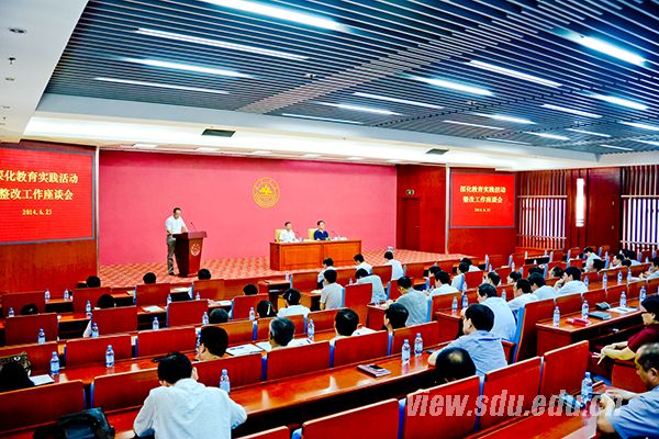 [本站讯]6月25日下午,山东大学在中心校区召开深化教育实践活动整改工作座谈会。学校教育实践活动领导小组组长、校党委书记李守信出席会议并讲话。学校教育实践活动领导小组副组长兼办公室主任、校党委常务副书记李建军主持会议。会上听取了学校有关单位整改落实工作典型发言,并对全校深化整改工作进行了安排部署。